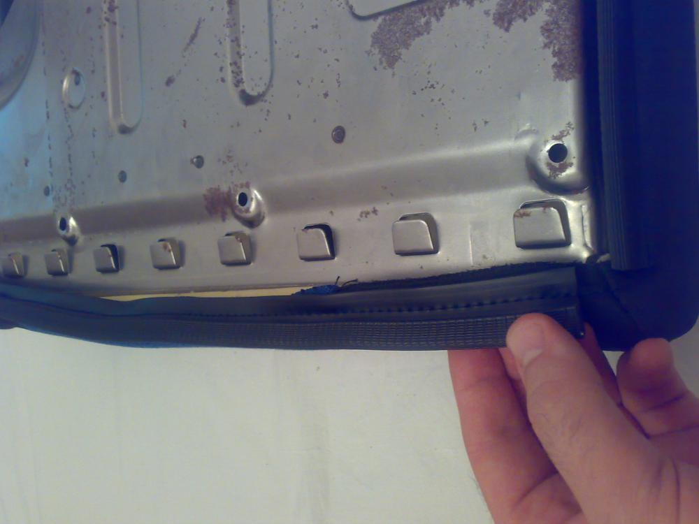 Для начала снял верхнюю обшивку с сидений. Оказалось это делается проще простого – надо снять черную окантовку чехла с металлической кромки сидений.
