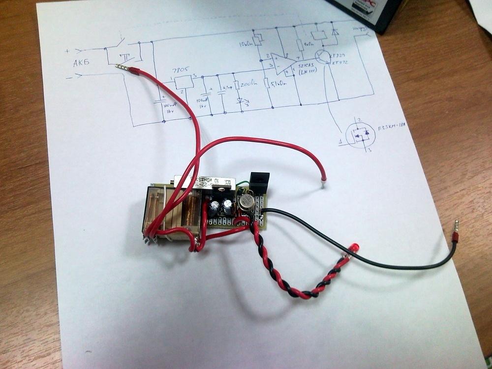 В качестве опорного напряжения использовал микросхему стабилизатора напряжения 7805. Компаратор - 521 СА3. Вместо биполярного транзистора я использовал полевик FS3KM-18A. Почему я выбрал эти элементы? Да потому, что на работе полно всяких схем и оттуда я некоторые выпаял. Некоторые просто валялись в столе. Короче на схему я ничего не потратил, кроме своего времени.