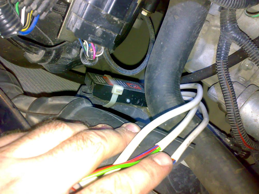 По примеру производителя перенес блок с вентилятора в район АКБ (на опоре стойки закрепить не удалось потому, что из-за растяжки гайка и так еле держится).