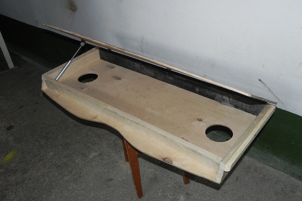 Изначальная идея предполагала что крышка полки поднималась вместе с динамиками. Это создавало некоторые вопросы по качеству звучания так как крышка полки не была закреплена и при работе динамиков возникал бы ненужный резонанс. В итоге было принято решение обрезать крышку полки и сделать крышку только в центральной части, а динамики жестко закрепить. Сегодня это и было сделано.