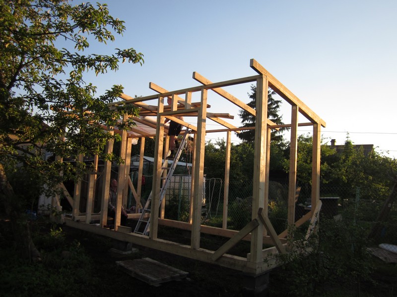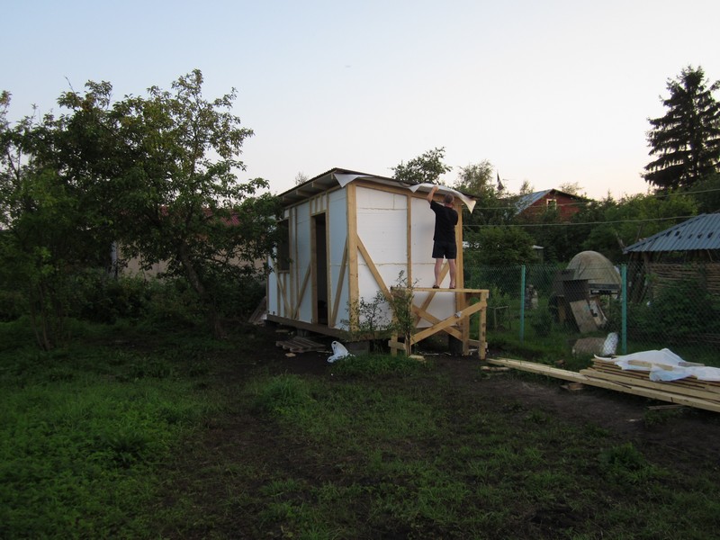 Сначала хотели купить готовую бытовку, но цены и качество из бруса 50х50, обшитое вагонкой без утеплителя, да еще и доставка выльется в приличную сумму. Вобщем решили делать сами.