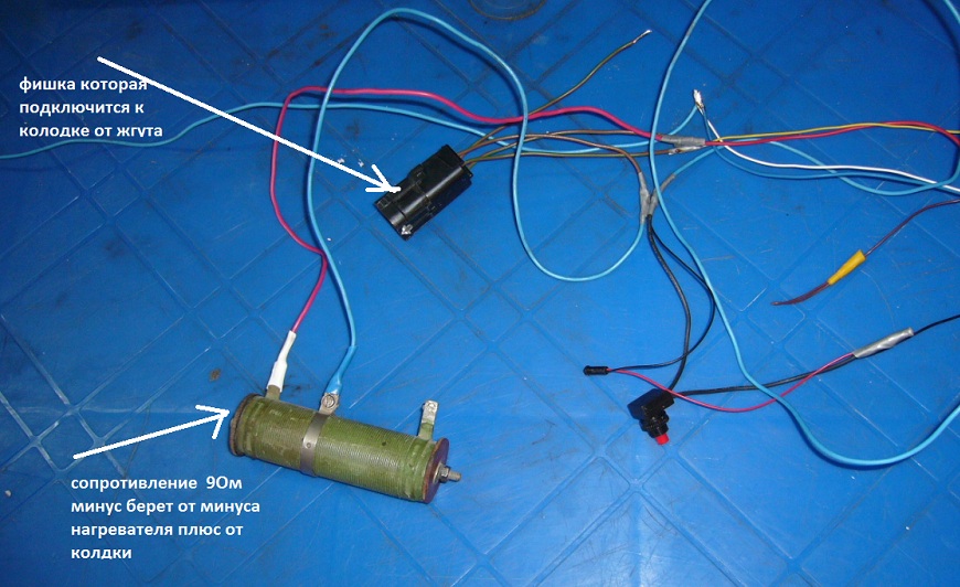Подключил контроллер ШДК таким образом: + контроллера красный провод подключаю к фишке жгута на котором появляется плюс после вкл. зажигания, аналоговый выход №1 контроллера ШДК (желтый провод) к контакту на котором после вкл. зажигания было 0,45 Вольта (соответствует черному проводу родного ДК) решил подключить этот провод для исключения появления ошибки) ШДК может работать и как родной ДК для этого и необходим аналоговый выход №1(желтый провод). Данное подключение- не прокатило, эбу выдало ошибку обрыв нагревателя, сопротивление родного ДК=9 Ом а сопротивление нагревателя ШДК-3,5Ом как только не мучился ошибка оставалась. Решил с имитировать нагреватель резистором чтобы обмануть эбу поставил резистор 9Ом мощность резистора высчитывается по закону Ома находим силу тока: 15Вольт сеть авто разделить на 9 Ом нагревателя=1,7Ампера, далее 15вольт умножаем на 1,7А получаем почти 26Вт т.е мощность резистора не менее 26Вт у себя нашел такой как на фото. данный резистор подключил к колодке от жгута к проводам нагревателя т.е полюс 12В и минус нагревателя (там где при измерении было более 3В) слов много толку мало по фото думаю более понятно. Краткий итог если ставить ШДК вместо родного ДК подключать не по инструкции, а как у меня через резистор (для исключения ошибок эбу)