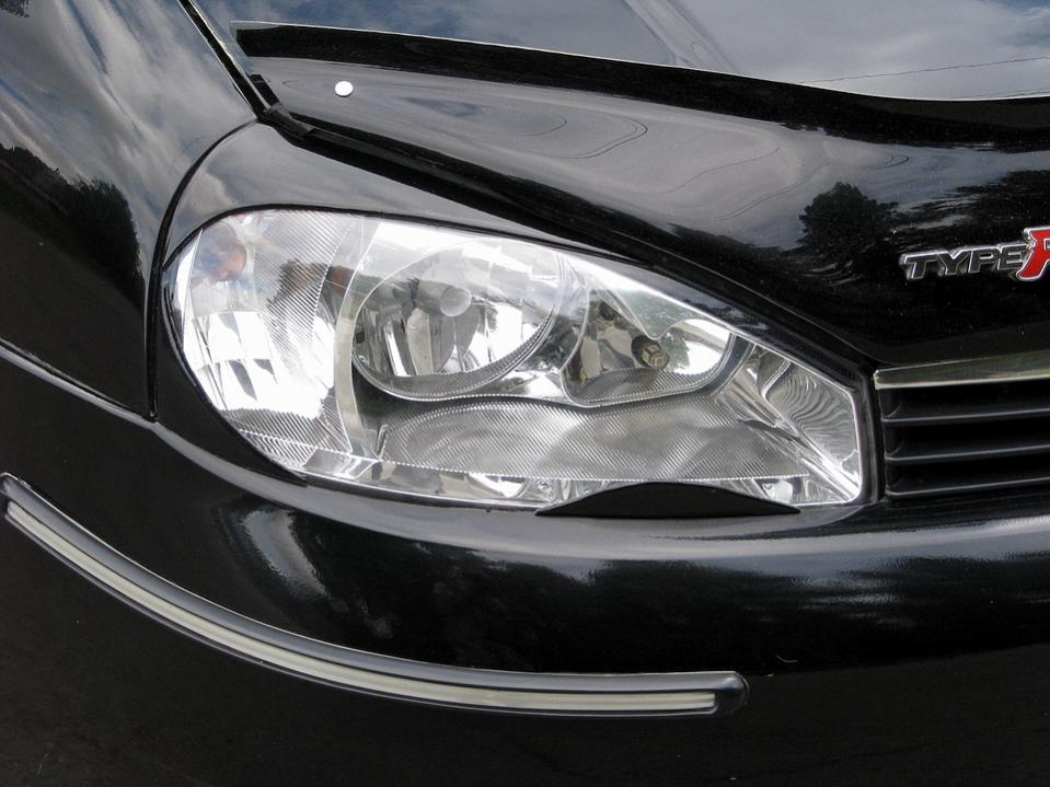 Комплект представляет из себя две накладки из АБС-пластика, не крашенные, гладкие, толщиной около 1-1,5мм, точно повторяющие форму фар. Соответственно, любой фрагмент такой накладки будет хорошо прилегать к поверхности фары и может быть приклеен как на двусторонний скотч, так и на герметик.