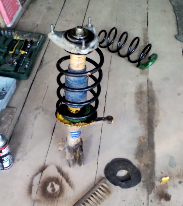 Просилась замена пружин, потому, что жесткие пружины и мягкие стойки не есть гут.