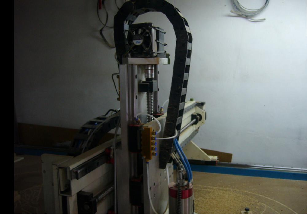 Шпиндель 2.2КВт жидкостного охлаждения управление оборотами при помощи инвертора В качестве помпы вначале попробовал использовать помпу с Газели под управлением этой штуки, но помпа оказалась слабенькой, сейчас стоит обычный циркуляционный насос для отопления. Радиатор не ставил, емкости 20л на 10л. антифриза хватает что бы шпиндель не грелся даже после 2-х суточной непрерывной работы. В начале кидал в емкость аккумуляторы холода, но это лишнее. На одной из фото видно, что в одном из драйверов стоит вентилятор. В этих драйверах есть возможность читать ошибки, там пишется температура процессора, он у меня начал перегреваться (неграмотная установка, плохой обдув) поэтому и было принято решение, о его установке. Эта работа мелочная, но для станка пришлось изготовить заземление, а это копать, забивать, варить и т.д. Заземления гаража, также, как и его электроснабжение, думаю, отдельная тема. Изготавливал все сам, при этом, бюджет станка стал более 200000 рублей. (это при долларе годовалой давности). Думаю, это многих отрезвит которые захотят тоже «замутить». Расходники для станка не дешевые. Модели можно качать с интернета бесплатные, или покупать на сайтах типа форд 3д. Мне очень нравятся работы Игоря Офицерова сейчас покупаю у него. Станок пилит, но недоделок еще много. Сейчас делаю систему смазки станка, далее необходимо доделать вытяжку (надоела пыль в гараже, да и с пылесосом бегать не тот возраст) Самое основное сейчас добиться такого качества работ, что бы не стыдно было показать людям. Стремлюсь достичь уровня изготовления мастера Сергея Сила.