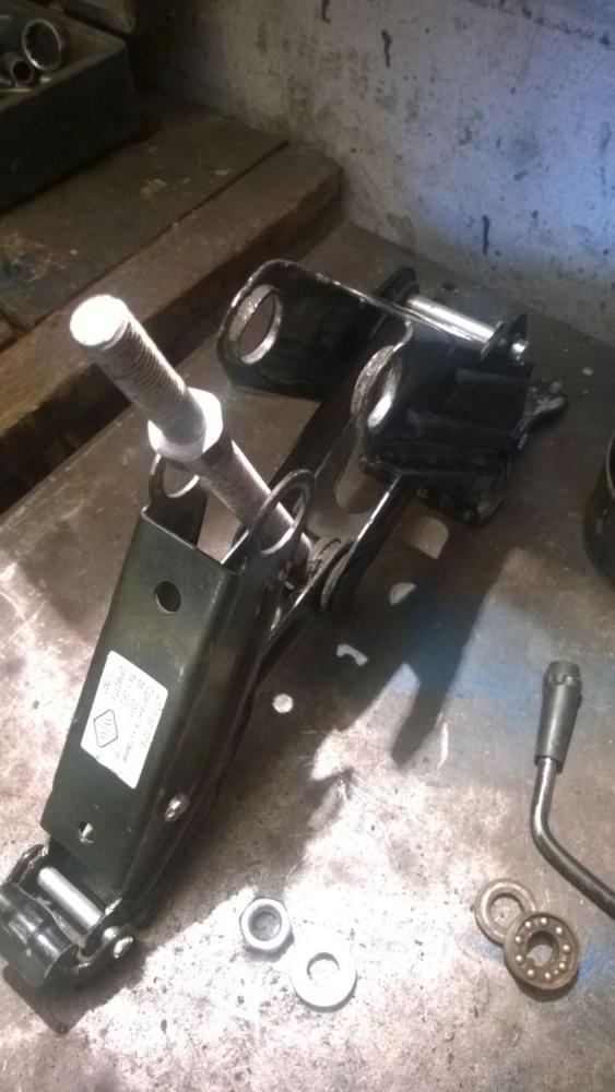 Все знают,что штатный домкрат не очень надёжный,и у меня он сломался с самого начала,с первого подъёма,кое-что подделал и он прослужил почти 6 лет,но тут при последней переобувке он развалился в верхней части,там где подшипник,стали слетать щёчки при любом,самом лёгком смещении авто,а этого никак не избежать,сколько не подкладывай упоров под колёса ..