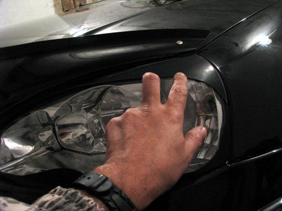 Т.к. фара имеет скругление по боковому краю, неплохо бы было, если бы накладка также имела подобное скругление, тогда вырезанные из нее сегменты имели бы лучшее прилегание (не было бы щелей между ресничками и крылом).