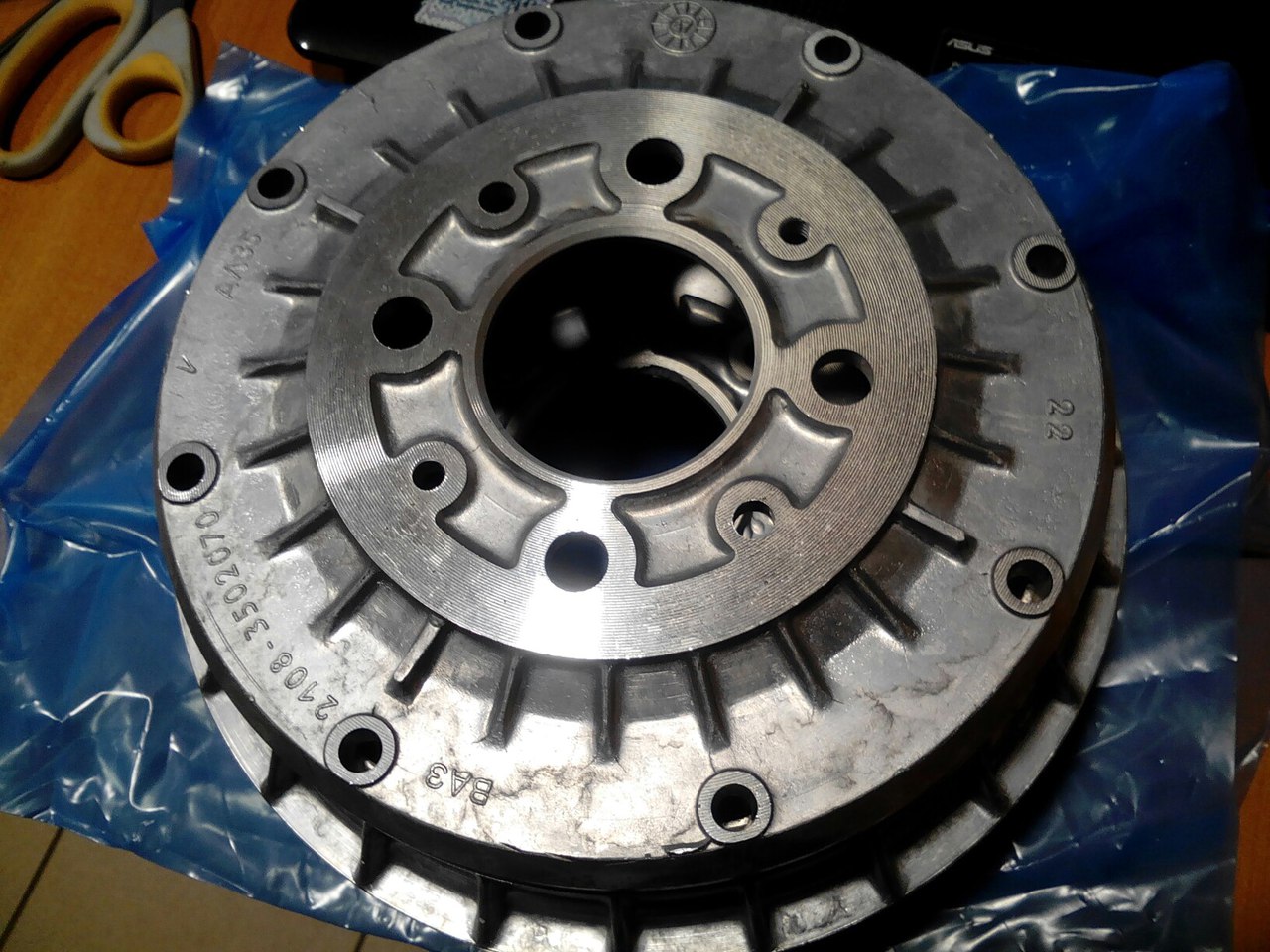 А это разве не трещина? Ну ладно, пускай "дефект" литья. Один хрен, ставить такой барабан весьма рискованно.