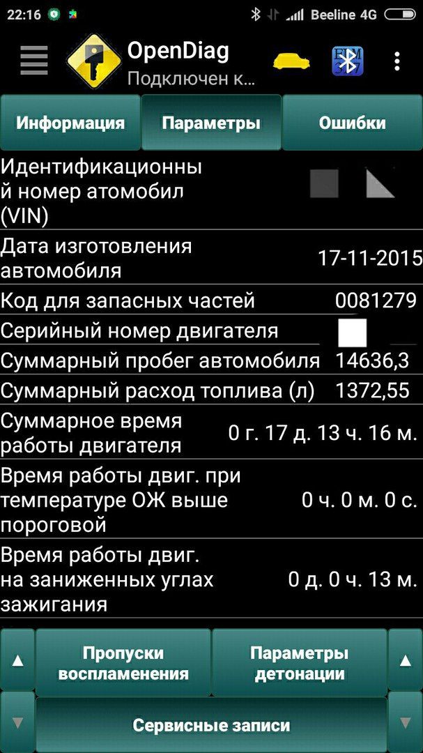 ПАРАМЕТРЫ/СЕРВИСНЫЕ ЗАПИСИ